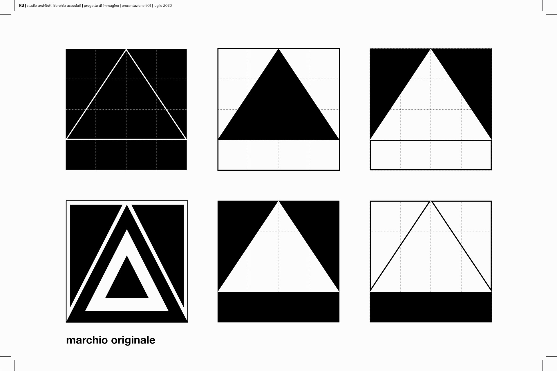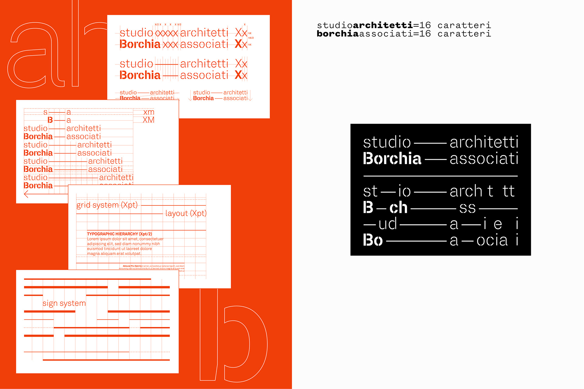 Il progetto per la nuova identità visiva di studio architetti Borchia associati parte dal restyling del marchio: un triangolo isoscele dai tratti molto articolati inscritto in un quadrato. Gli elementi originali sono stati mantenuti ma ridisegnati e normati in una griglia 4x4. La griglia quadrata che strutta il marchio costituisce anche l’elemento generativo degli spazi compositivi di tutti i layout, garantendo continuità formale tra tra logo e artefatto. Il controllo sugli spessori comuni alla figurazione e al lettering garantiranno unità e coerenza visiva tra marchio e logotipo nelle diverse scale e declinazioni.