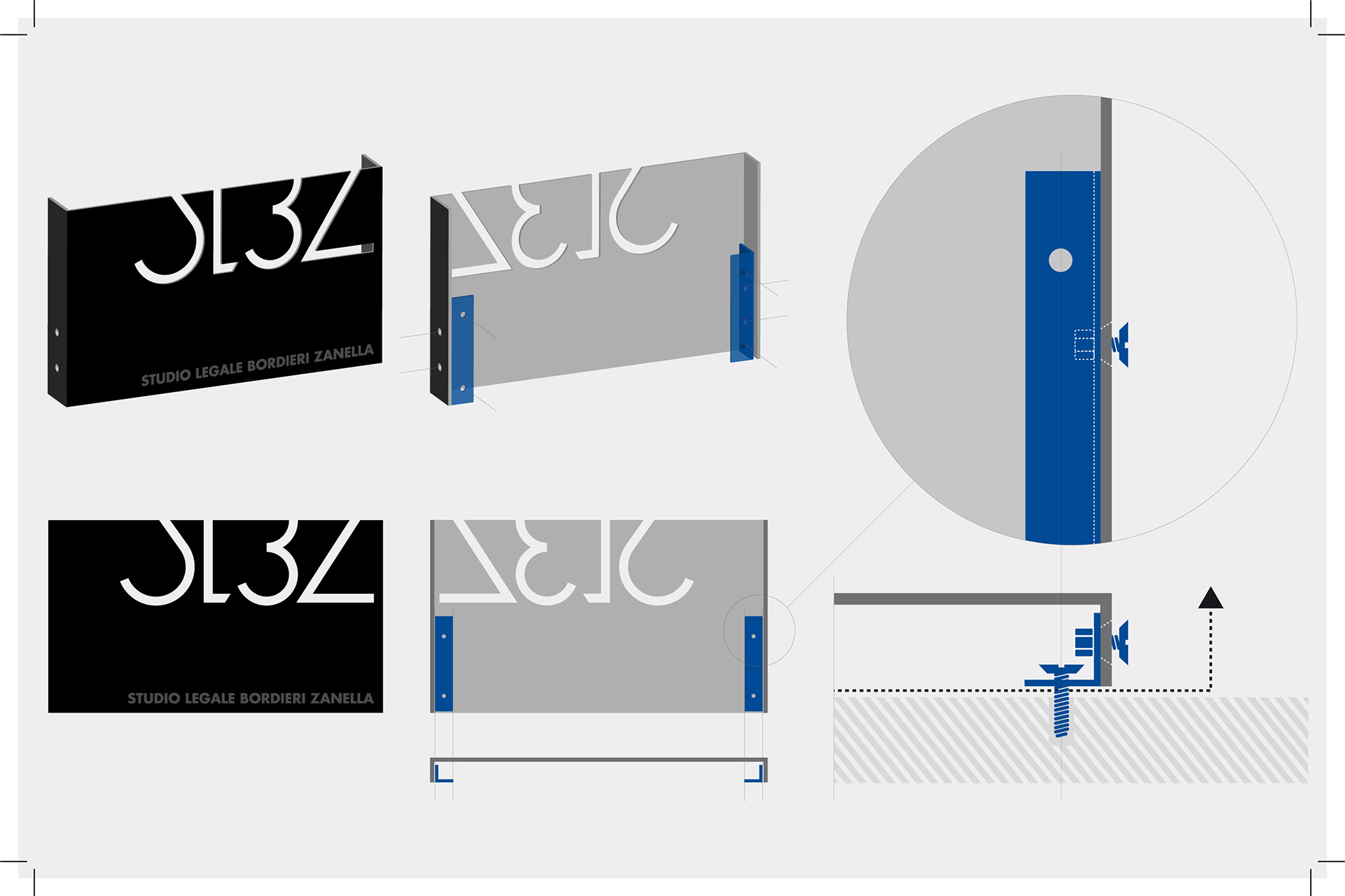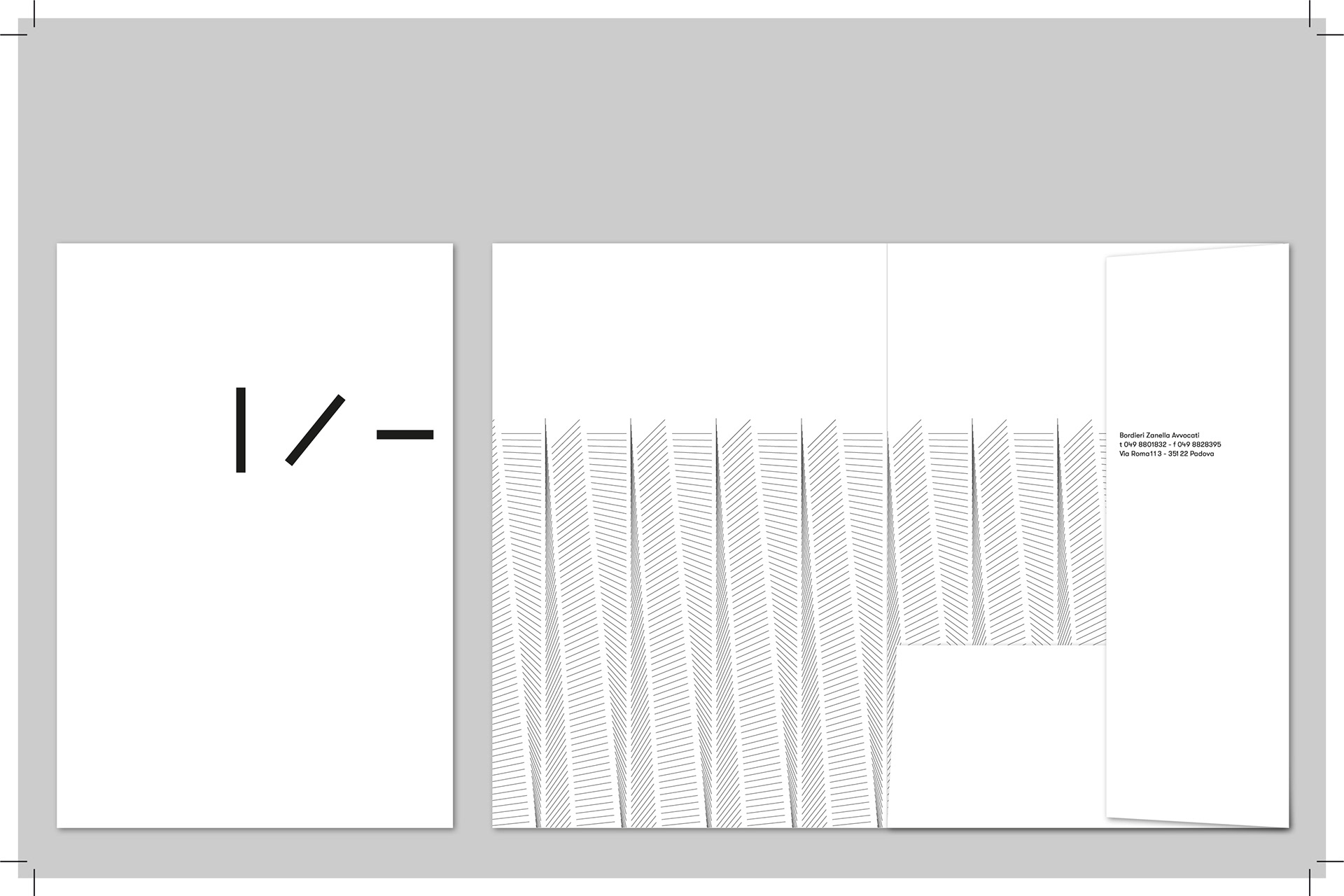 All’origine, i codici. Il corpus di norme e procedure, la sequenza di articoli numerati, di commi e di postille costituisce, oltre che la manifestazione dello spirito della legge, anche il fondamentale strumento operativo dell’attività di uno studio legale. Ci si è chiesti allora se i codici sarebbero potuti diventare anche l’origine di un codice di autorappresentazione. L’ordine numerico degli articoli è stato, dunque, individuato quale elemento centrale di un nuovo repertorio simbolico; e la cifra numerica il materiale sul quale plasmare un segno specifico per l'identità visiva dello studio legale Bordieri Zanella.